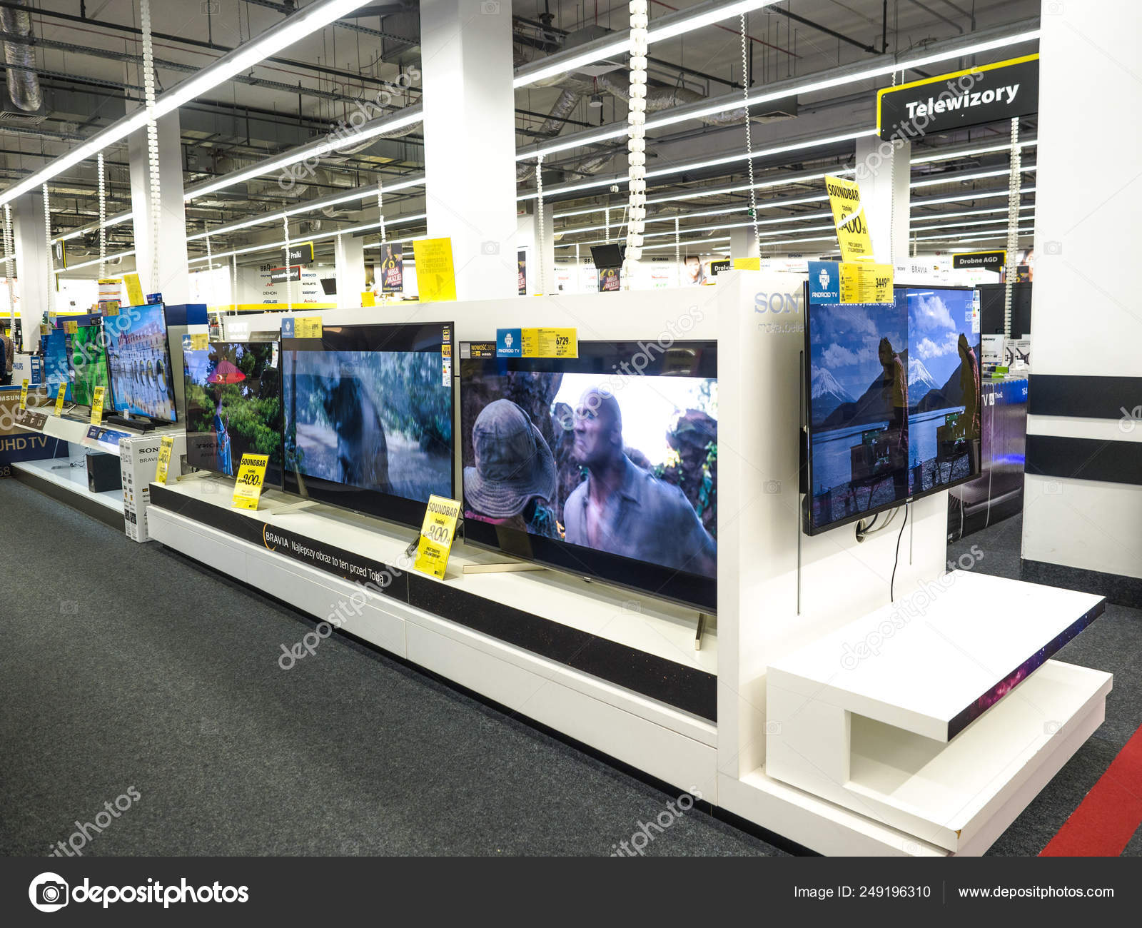 28 November 2018 Posnania Shopping Centre Poznan Poland Shop For 4k Tv A Display Of Television On Shelves Showcase With New And Modern Tv In The Modern Electronics Store Stock Editorial
