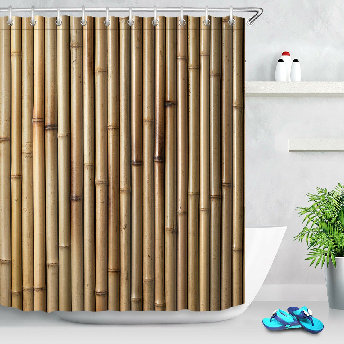 Satin Al Ahsap Bambu Arka Plan Dus Perdesi Banyo Dayanikli Kumas