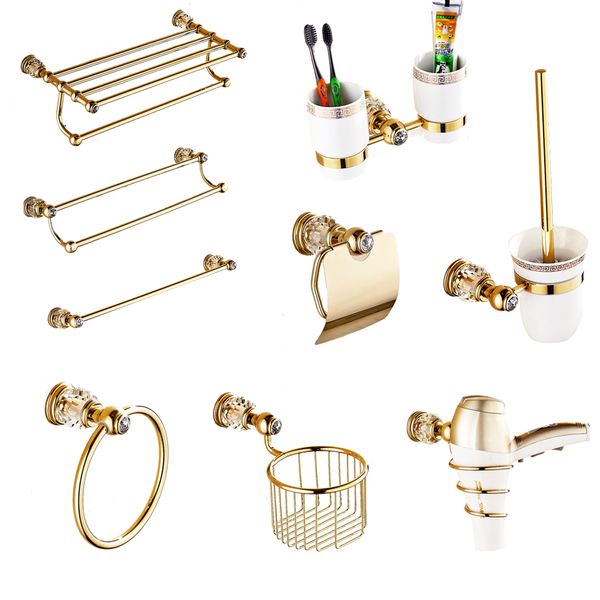 Butce Kristal Pirinc Altin Banyo Donanim Setleri Duvara Monte