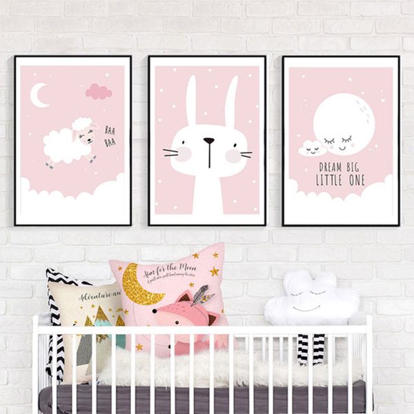Satin Al Sevimli Karikatur Duvar Posterler Tavsan Koyun Ay Pembe
